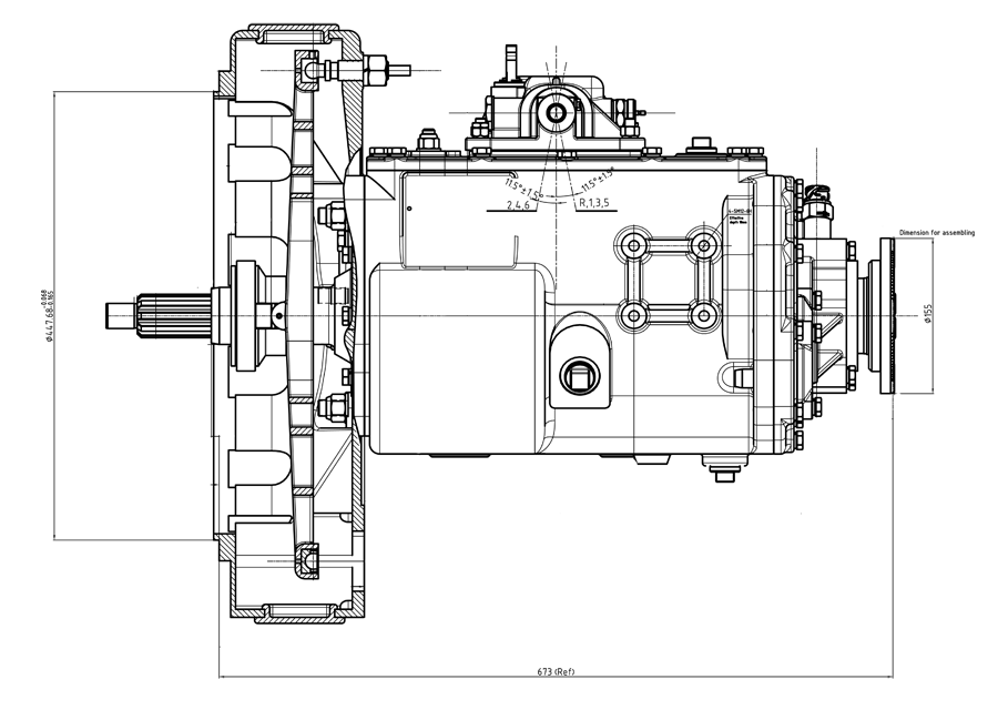 КПП 6DSX95T-AT-G32239 - полностью синхронизированная коробка передач с двумя промежуточными валами и максимальным входным крутящим моментом 950 Н/м, производства промышленной корпорации Shaanxi Fast Gear. За счет передачи крутящего момента через два промежуточных вала , коробка передач 6DSX95T отличается небольшими размерами, низким уровнем шума и высокой надежностью. Картер муфты выключения сцепления КПП 6DSX95T-AT-G32239 выполнен по стандарту SAE-2