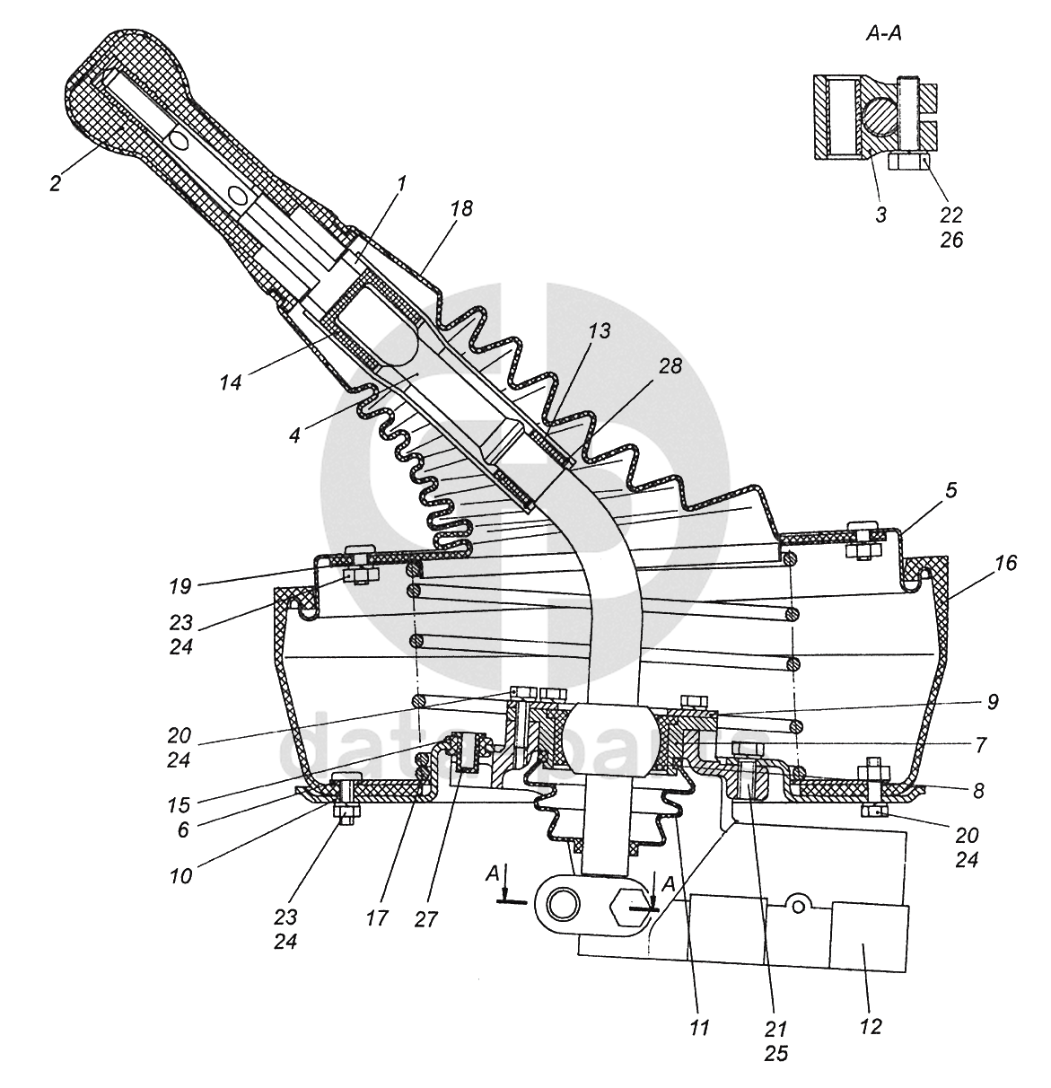 142.1703204 Опора рычага переключения передач с рычагом и краном управления КамАЗ-43502 (Евро 4)