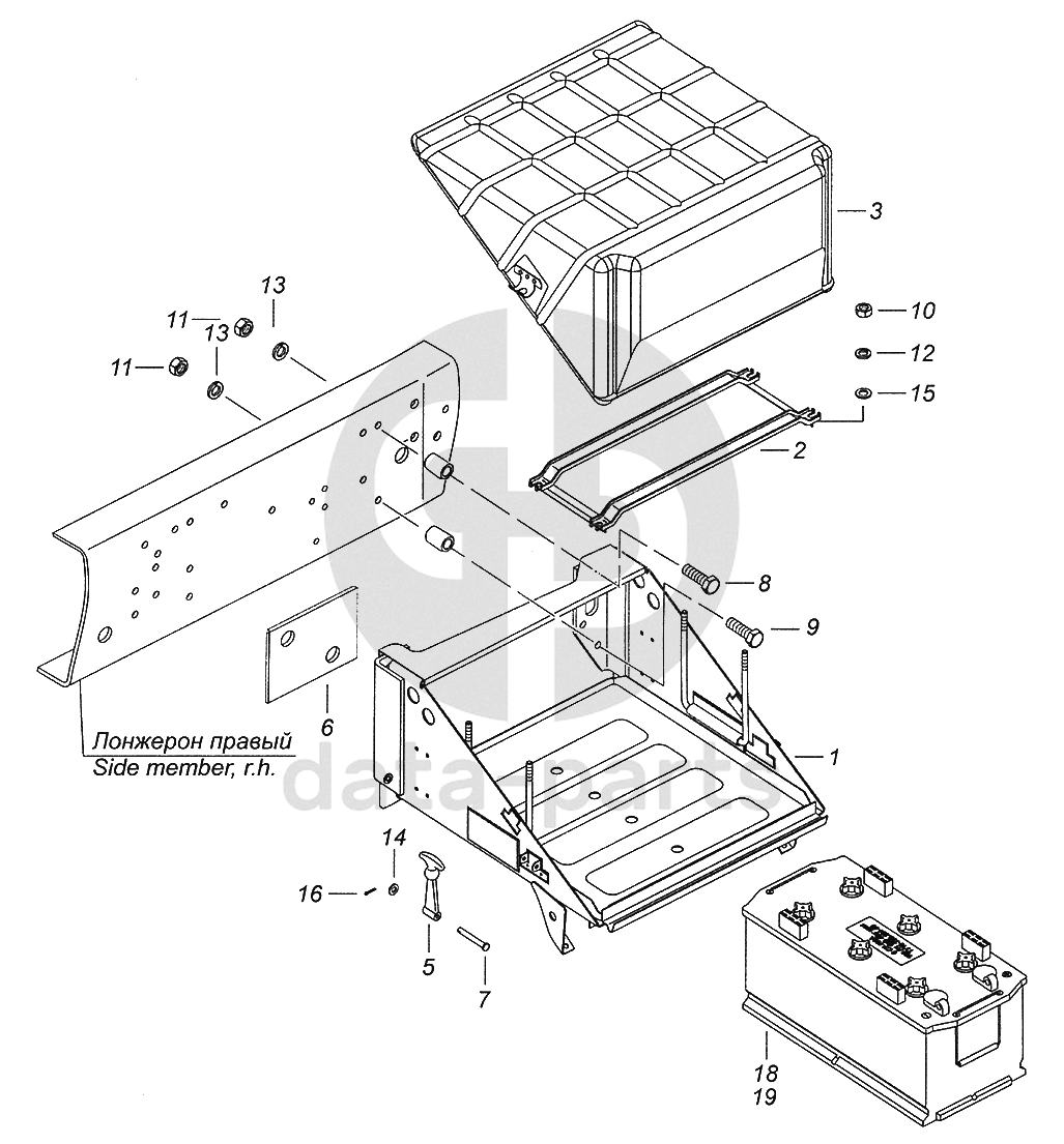 5320-3703001 Установка аккумуляторных батарей КамАЗ-43502 (Евро 4)