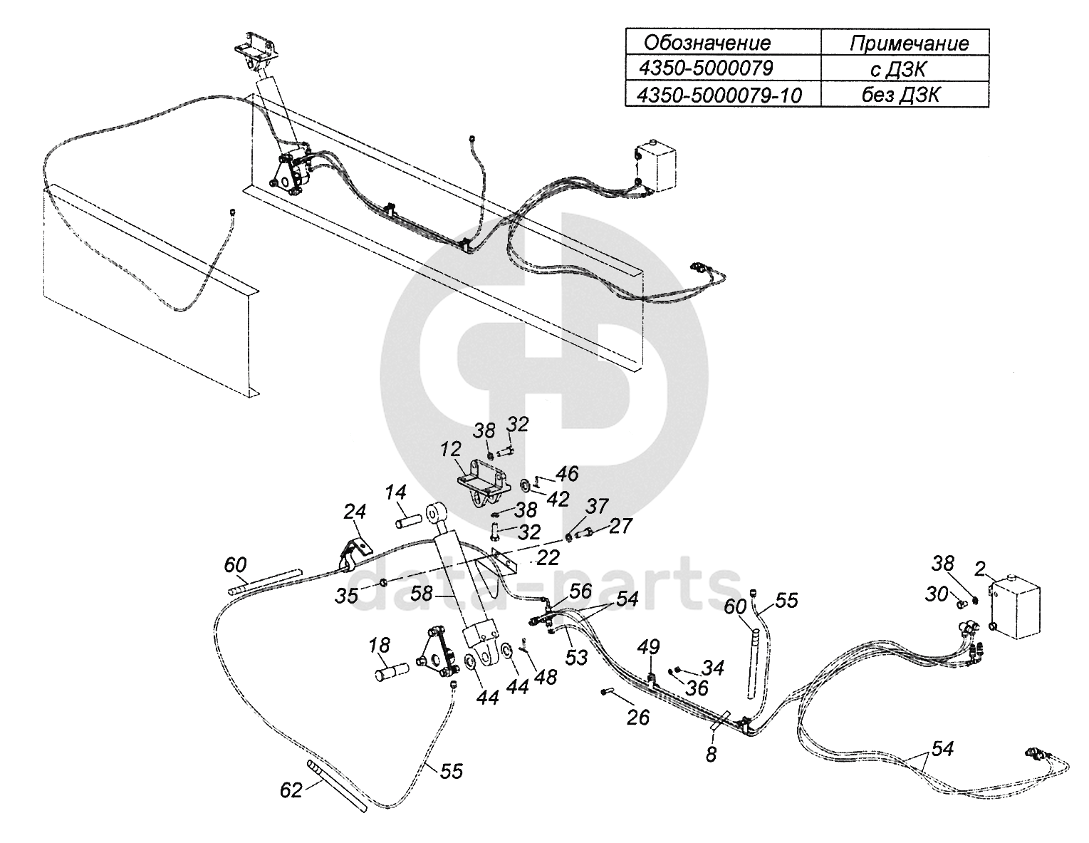 4350-5000079 Установка механизма опрокидывания кабины и запасного колеса КамАЗ-43502 (Евро 4)
