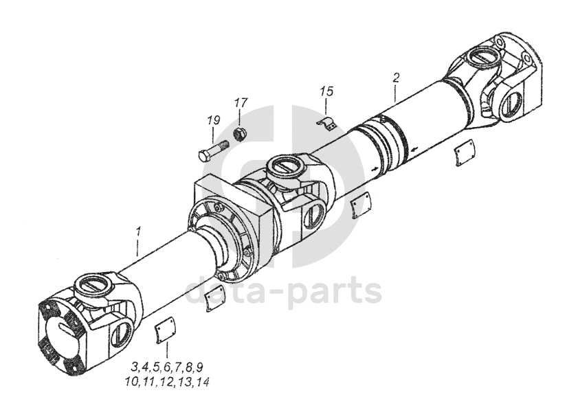 Вал карданный среднего моста в сборе (сварка)