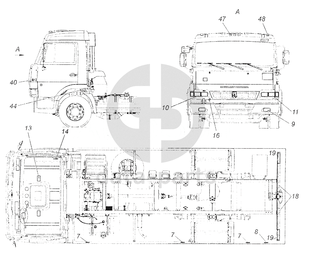 5308-3700001-15 Светотехника на автомобиле КамАЗ-5308 (Евро 3)