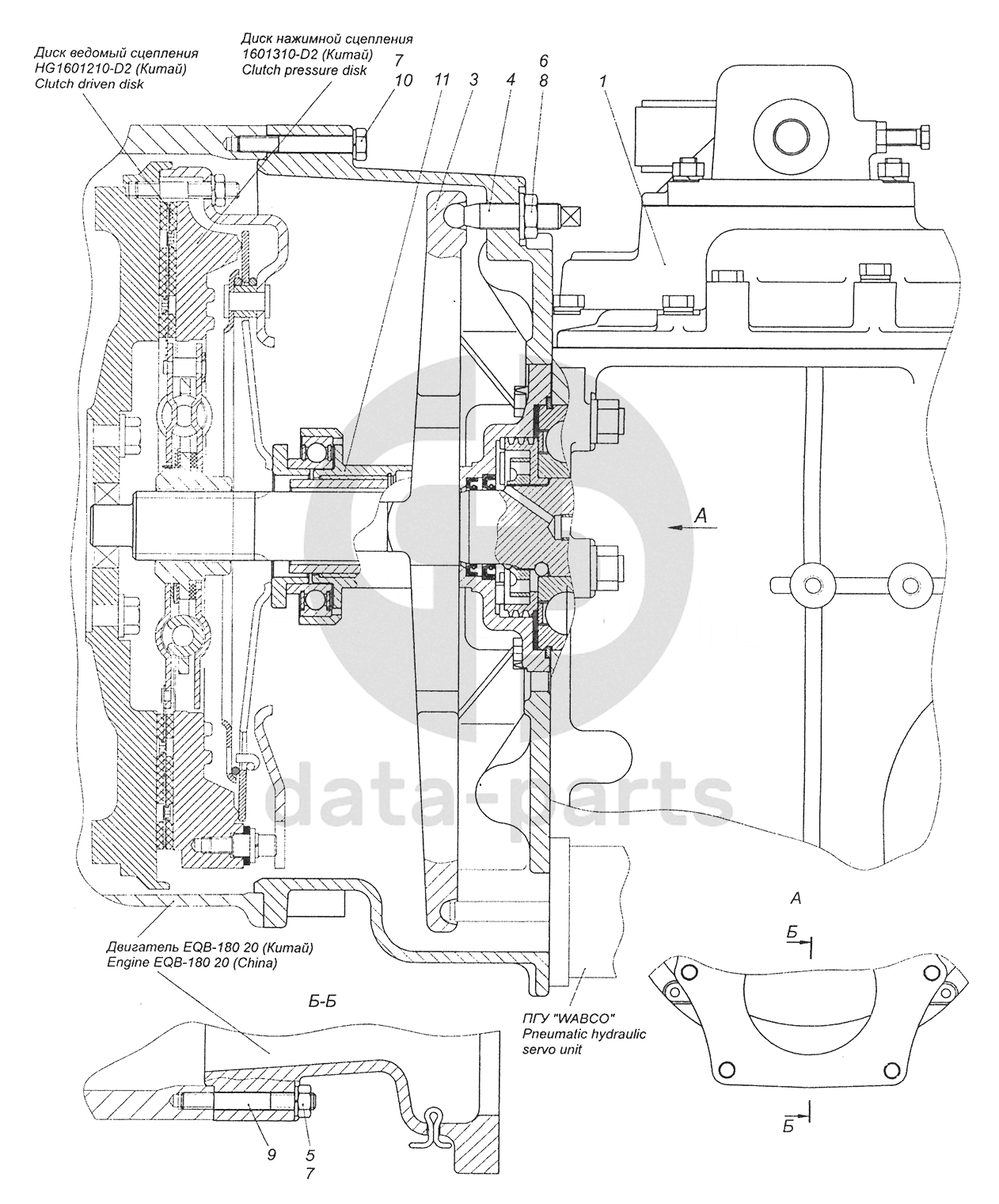 4308-1600005 Установка коробки передач и механизма выключения сцепления КамАЗ-43255 (Евро-2)