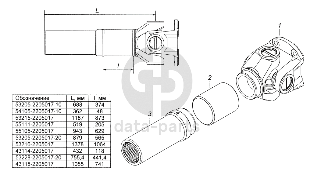 53205-2205017-10 Вал карданный с шарниром КамАЗ-43255 (Евро-2)