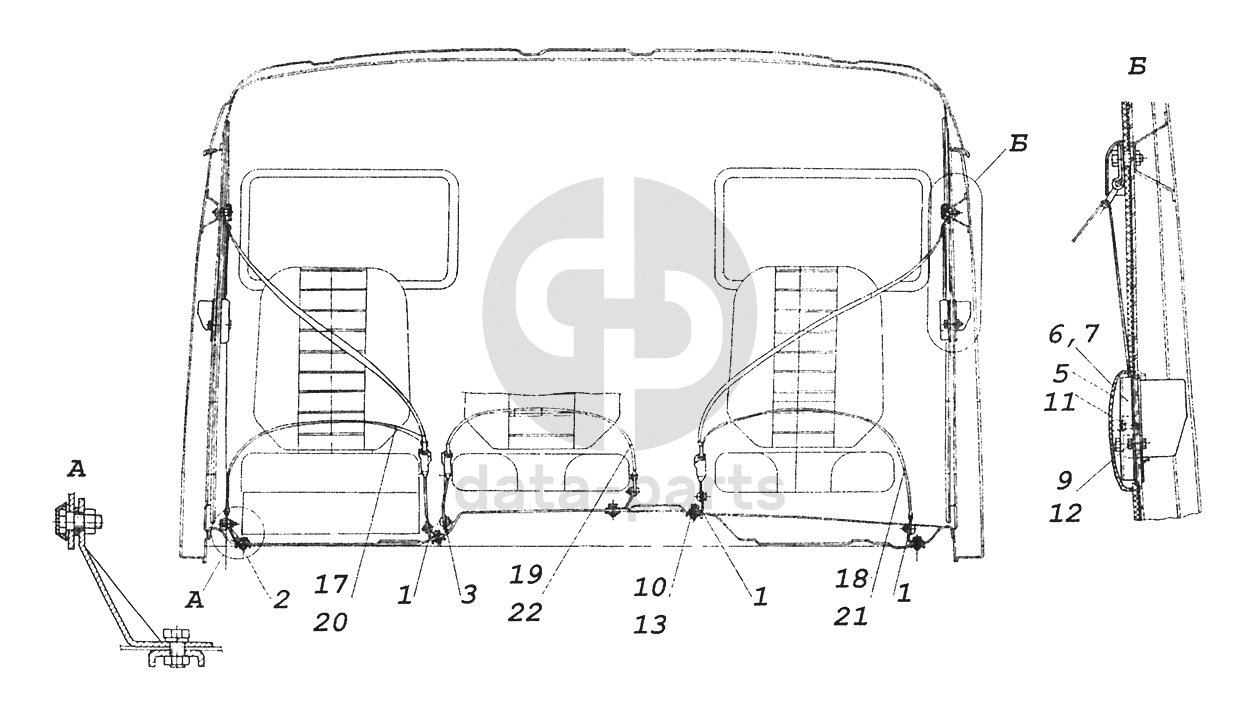 53205-5000075-10 Установка ремней безопасности КамАЗ-43255 (Евро-2)