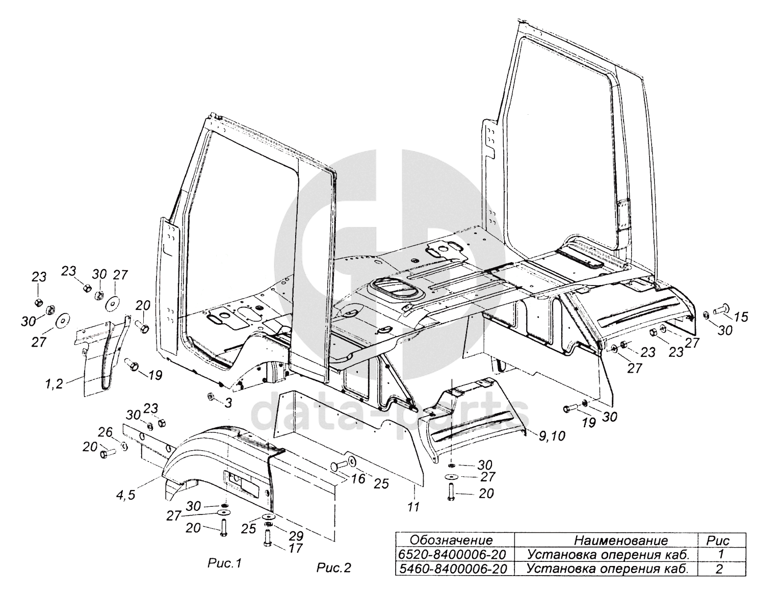 6520-8400006-20 Установка оперения кабины КамАЗ-43255 (Евро-3)
