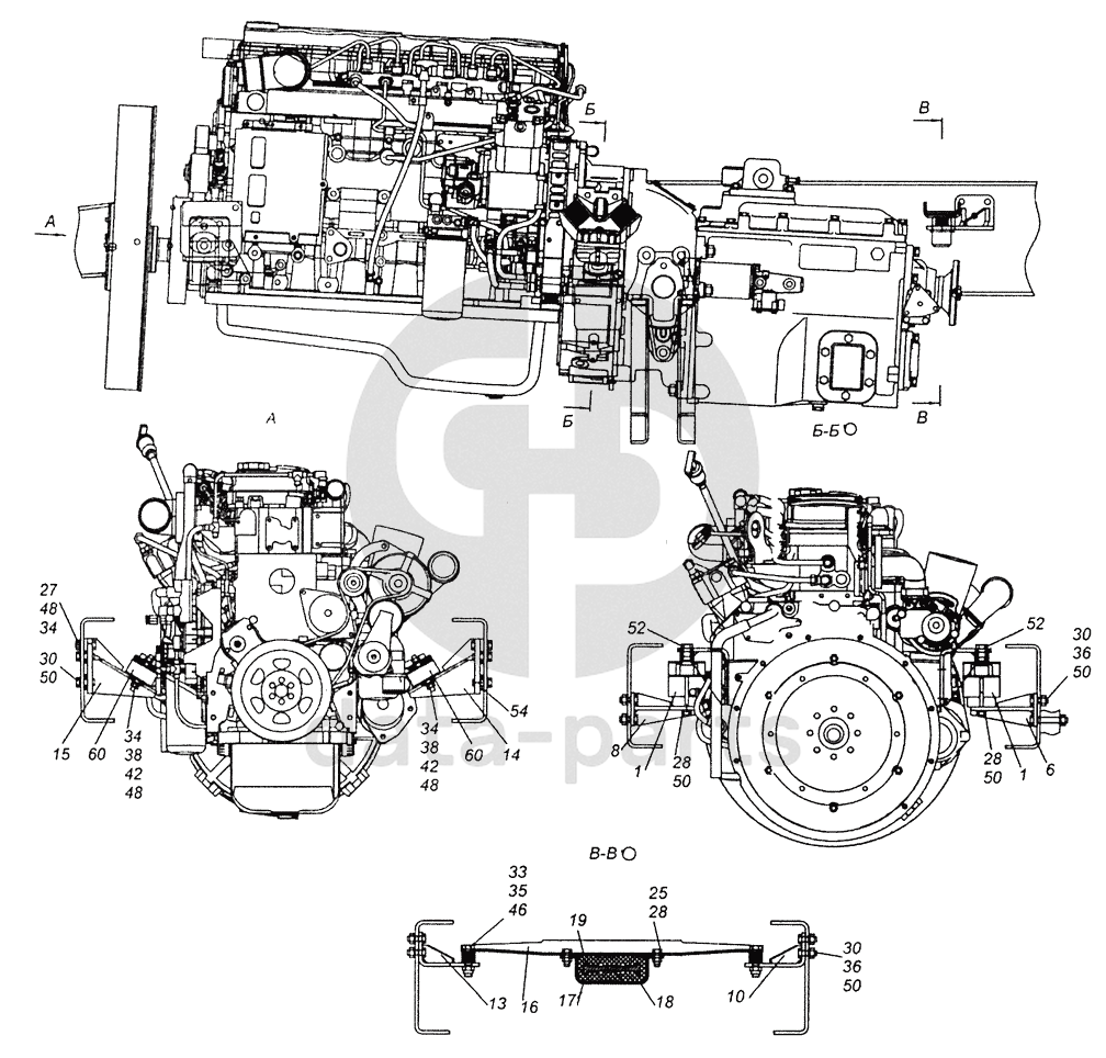 43255-1001005-20 Установка силового агрегата КамАЗ-43253, 43255 (Евро-4)