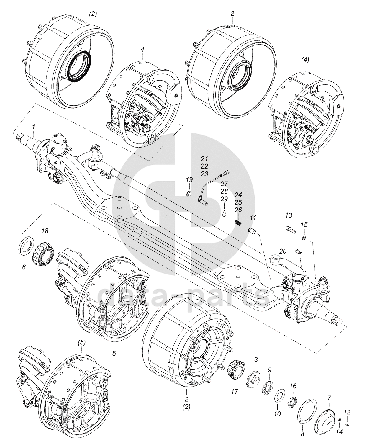 65115-3000012-13 Ось передняя с тормозами - Front axle with brakes КамАЗ-43253, 43255 (Евро-4)