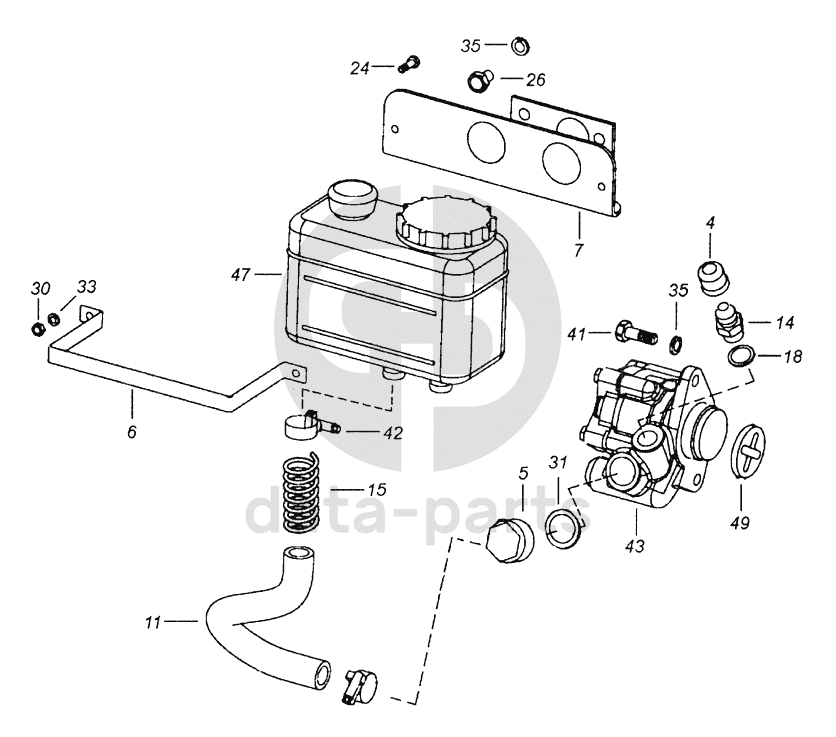 5308-3400019-10 Установка бачка и насоса ГУР - Tank and steering servo unit pump installation КамАЗ-43253, 43255 (Евро-4)