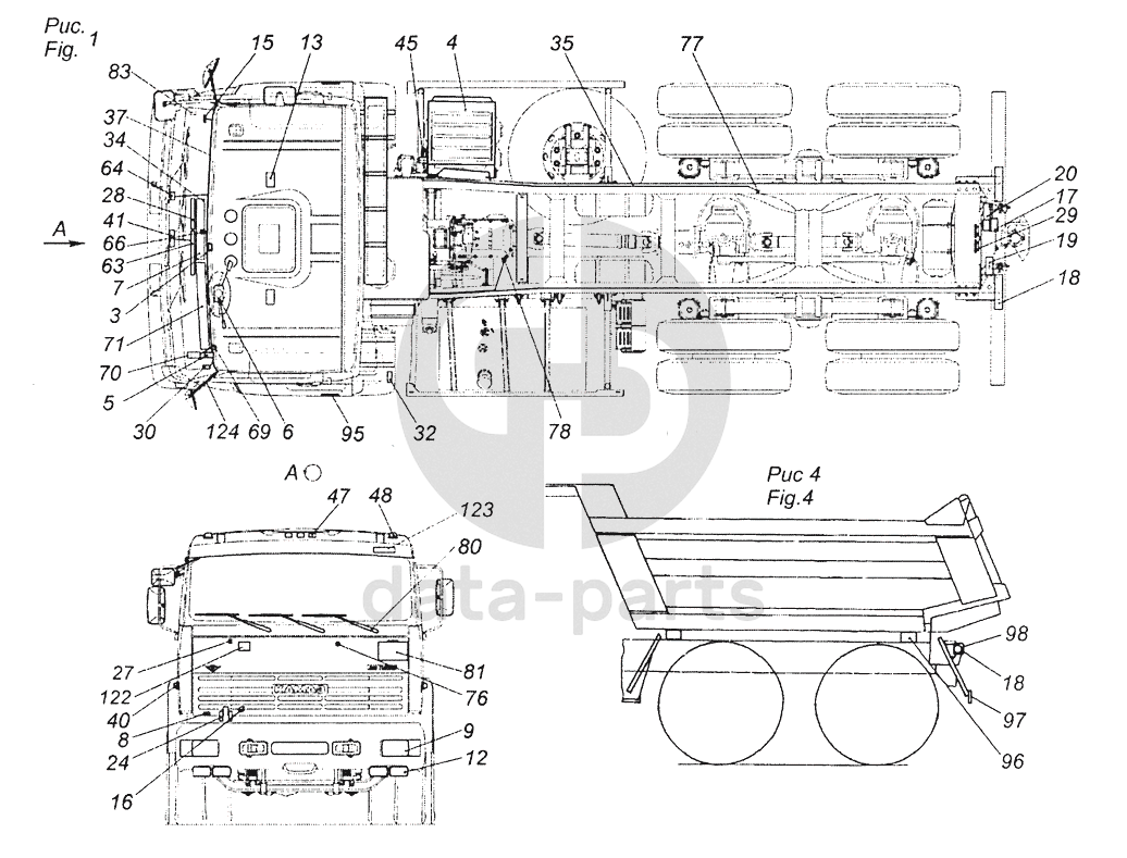 43255-3700001-37 Электрооборудование. Расположение на автомобиле КамАЗ-43253, 43255 (Евро-4)