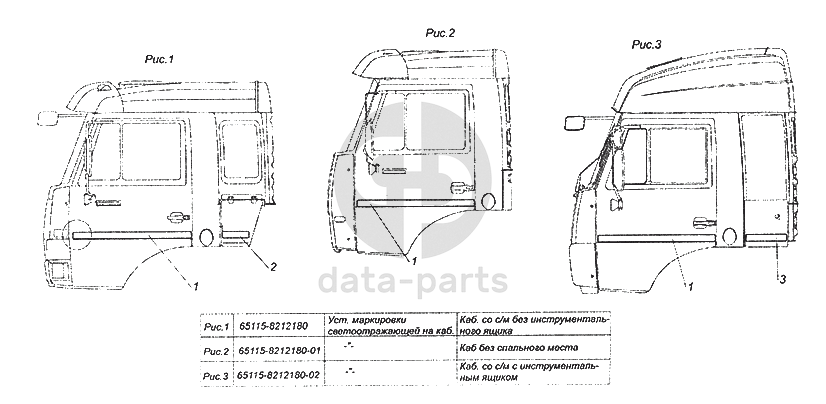 65115-8212180 Установка маркировки светоотражающей на кабине КамАЗ-43253, 43255 (Евро-4)
