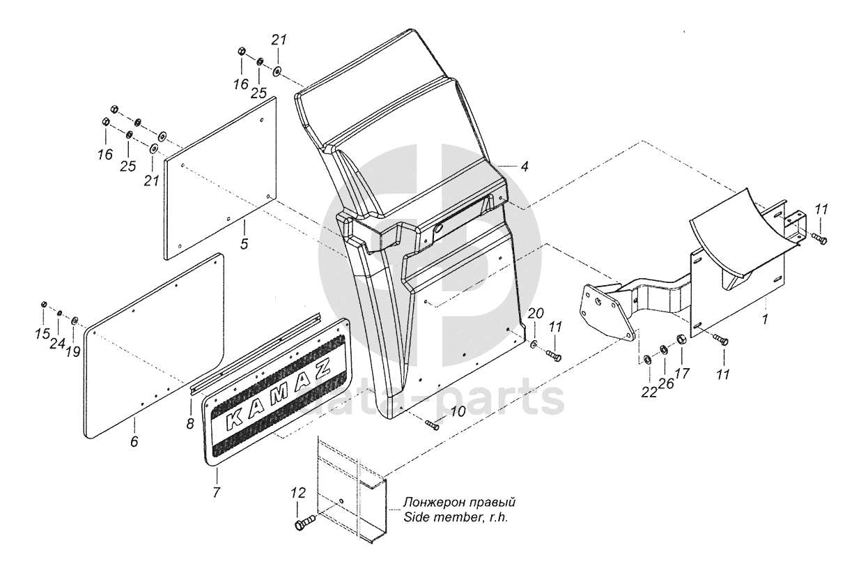 65115-8403010-42 Установка задней части переднего крыла правая КамАЗ-43253, 43255 (Евро-4)