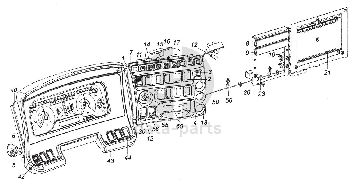 5308-3700060-21 Электрооборудование. Расположение на панели приборов
