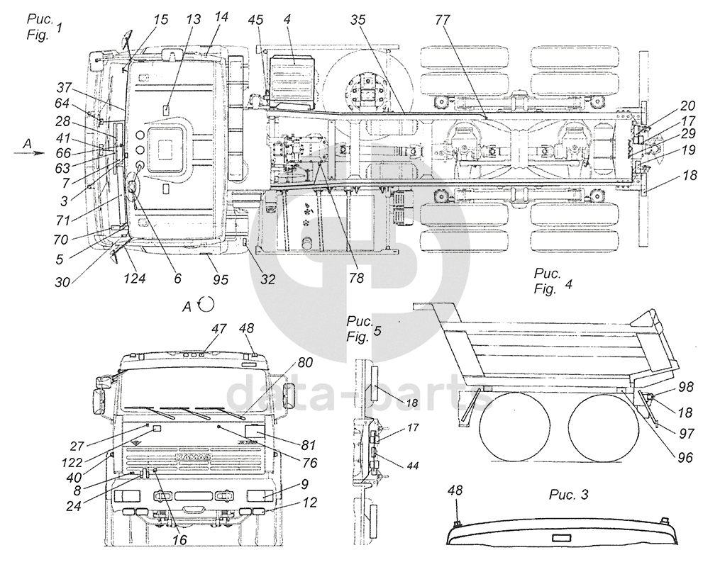 65115-3700012-34 Электрооборудование. Расположение на автомобиле КамАЗ-65115, 65116 (Евро-4)