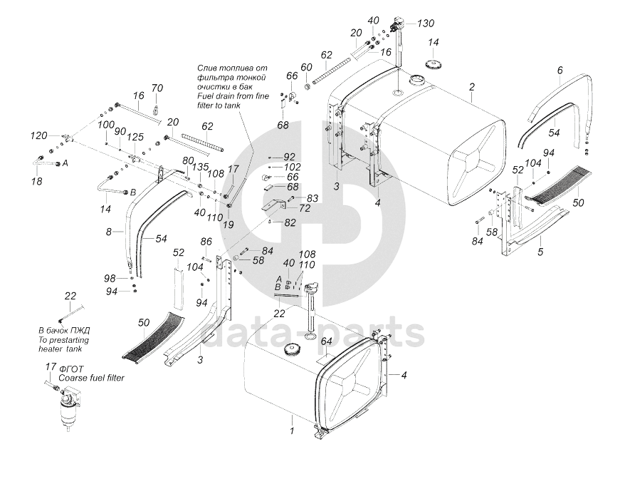 53501-1100015-42 Установка топливных баков и топливопроводов КамАЗ-43118 (Евро 4)