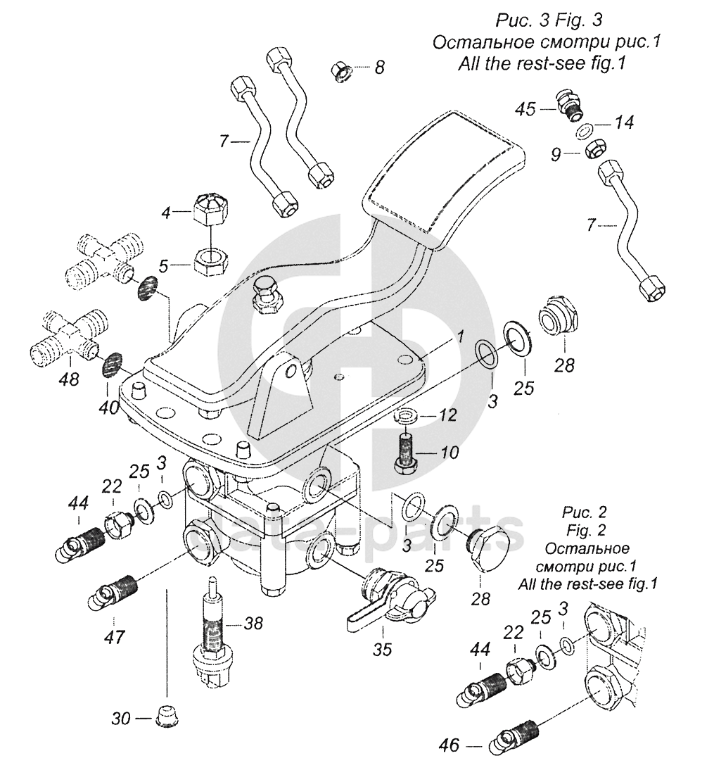 Кран КАМАЗ-ЕВРО тормозной 2-х секционный в сборе с педалью