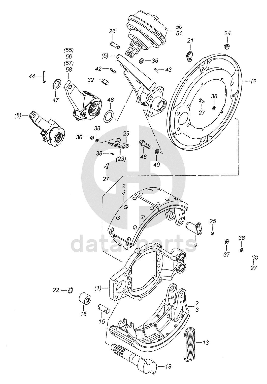 Кронштейн тормозной камеры и разжимного кулака тормоза левый в сборе