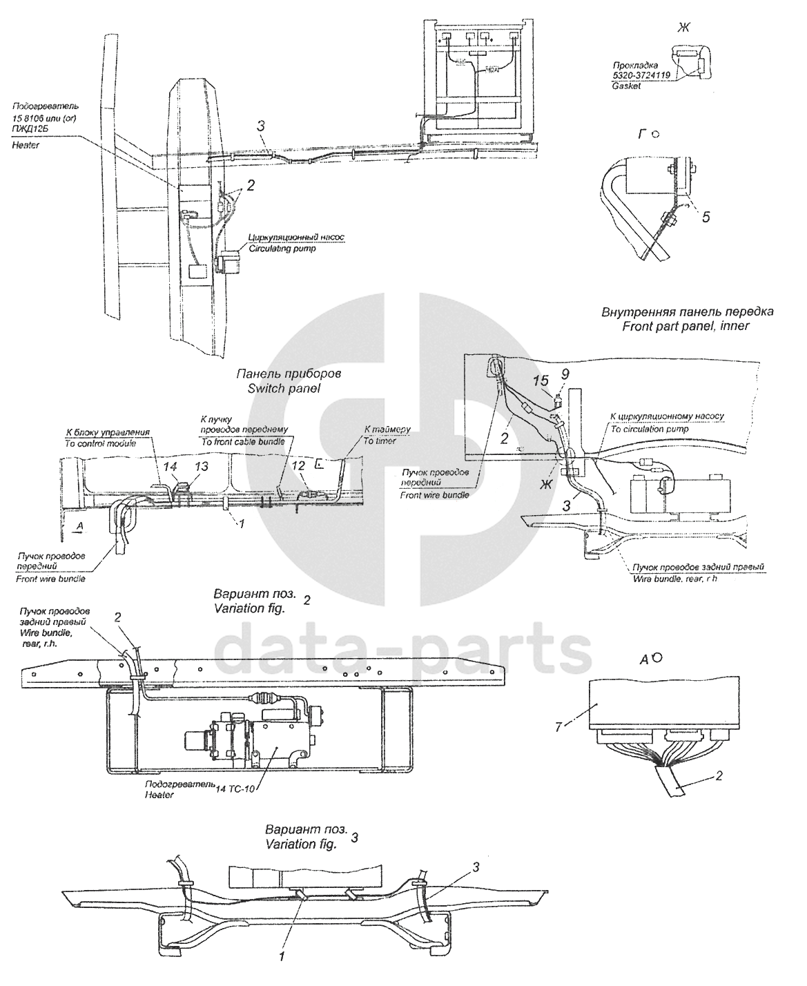 53205-3741001-20 Установка электрооборудования подогревателя ПЖД-12 КамАЗ-43253 (Часть-2)