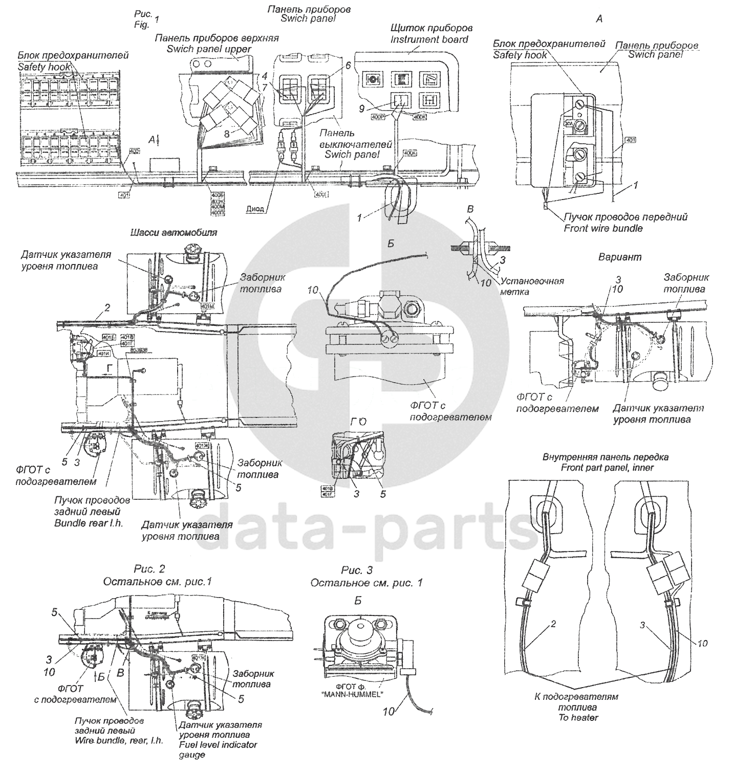 Проводка КАМАЗ-65111 системы подогрева топлива