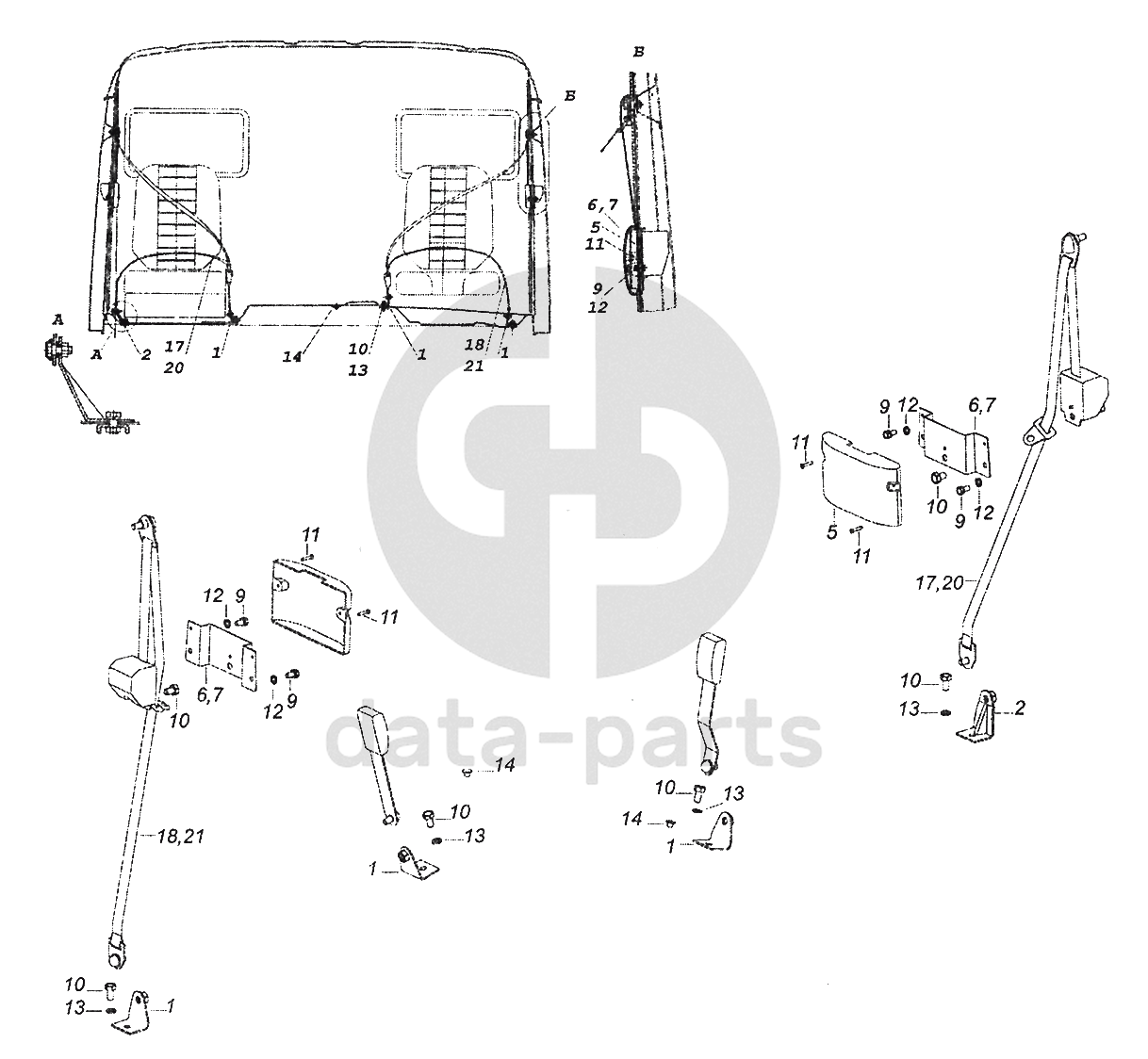 53205-5000075 Установка ремней безопасности КамАЗ-43253 (Часть-2)