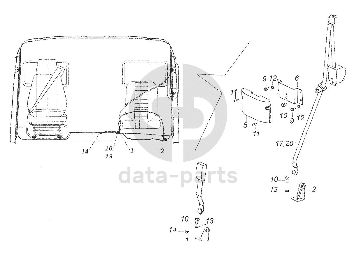 54115-5000075 Установка ремней безопасности КамАЗ-43253 (Часть-2)