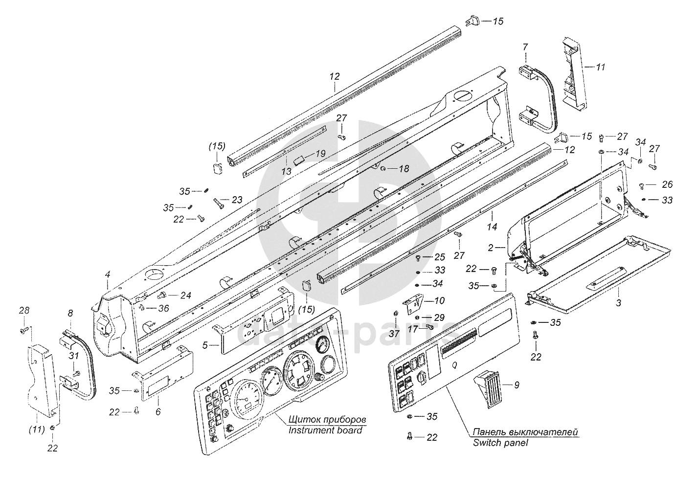Щиток КАМАЗ-5320 панели приборов нижний короткий