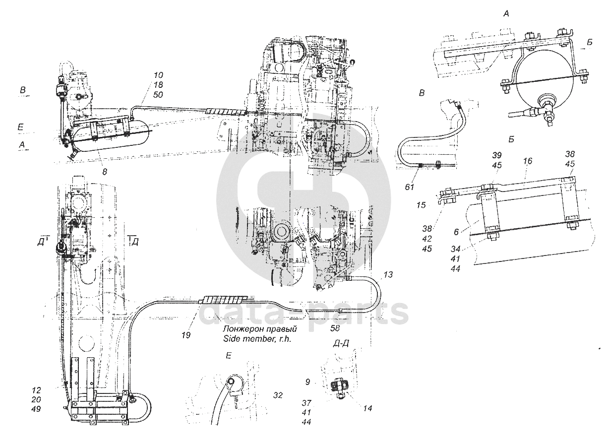 43255-8106002-10 Установка топливного бачка и топливопроводов подогревателя 14ТС КамАЗ-43253 (Часть-2)