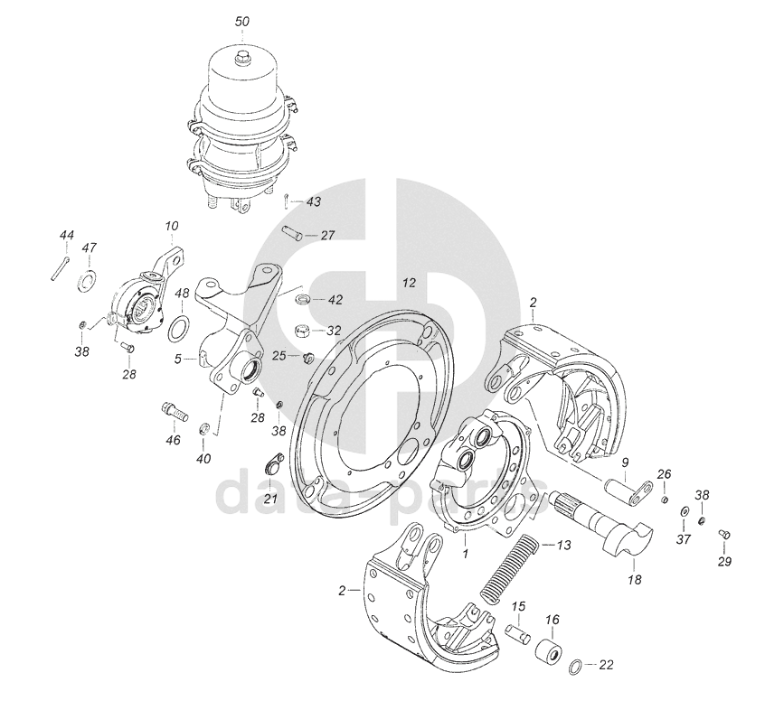Кронштейн тормозной камеры и разжимного кулака тормоза левый в сборе