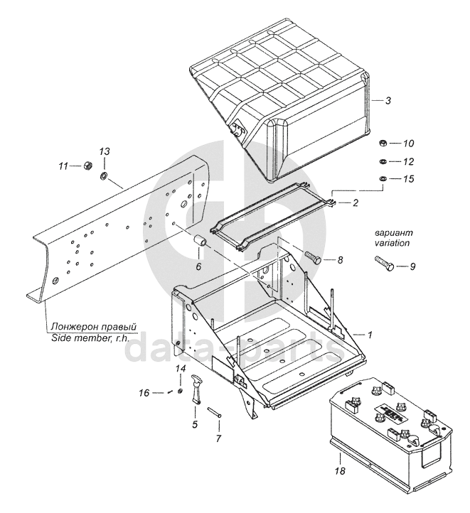 53228-3703001-85 Установка аккумуляторных батарей КамАЗ-65111 (Евро 4)