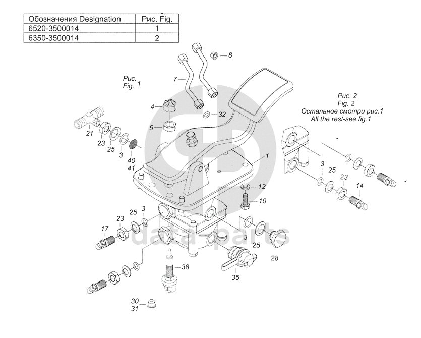 Кран КАМАЗ-ЕВРО тормозной 2-х секционный в сборе с педалью