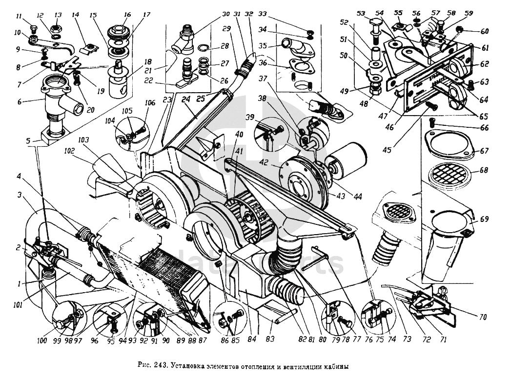 Установка элементов отопления и вентиляции кабины Общий (см. мод-ции)