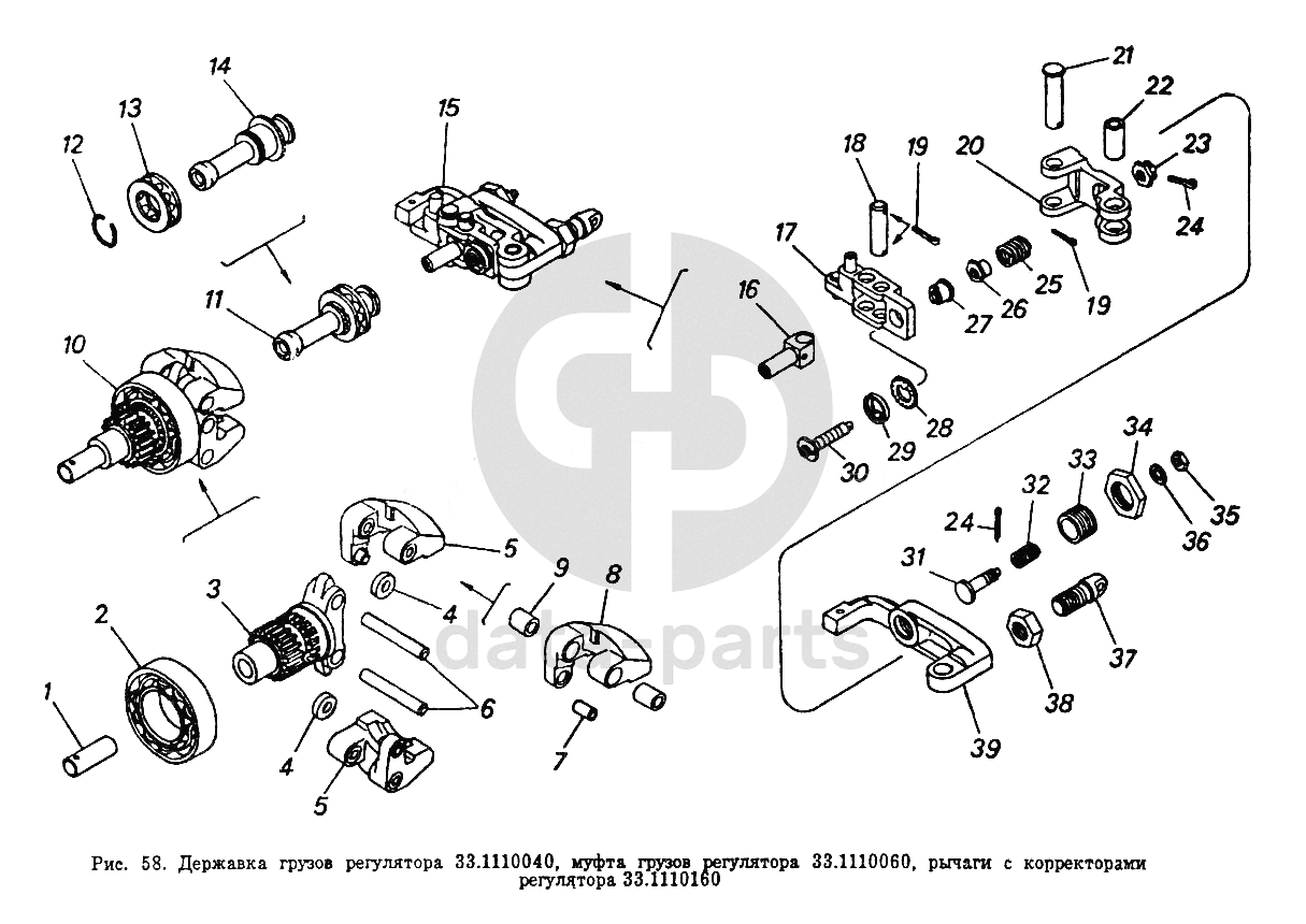 Державка грузов регулятора, муфта грузов регулятора, рычаги с корректорами регулятора Общий (см. мод-ции)