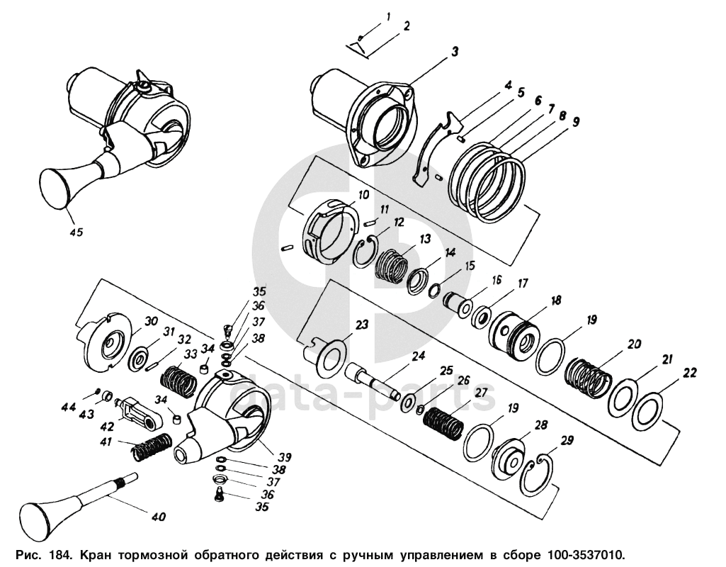 Кран тормозной обратного действия с ручным управлением в сборе Общий (см. мод-ции)