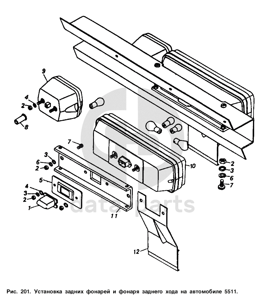 Установка задних фонарей и фонаря заднего хода на автомобиле 5511 Общий (см. мод-ции)