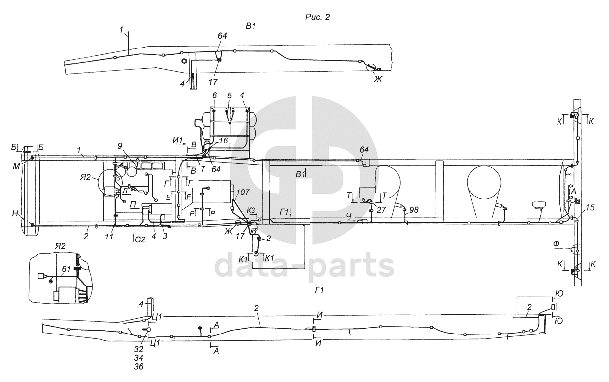 Установка проводов на шасси Э4308-3724004 КамАЗ-4308