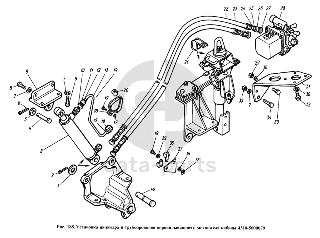 Установка цилиндра и трубопроводов опрокидывающего механизма кабины КамАЗ-4310