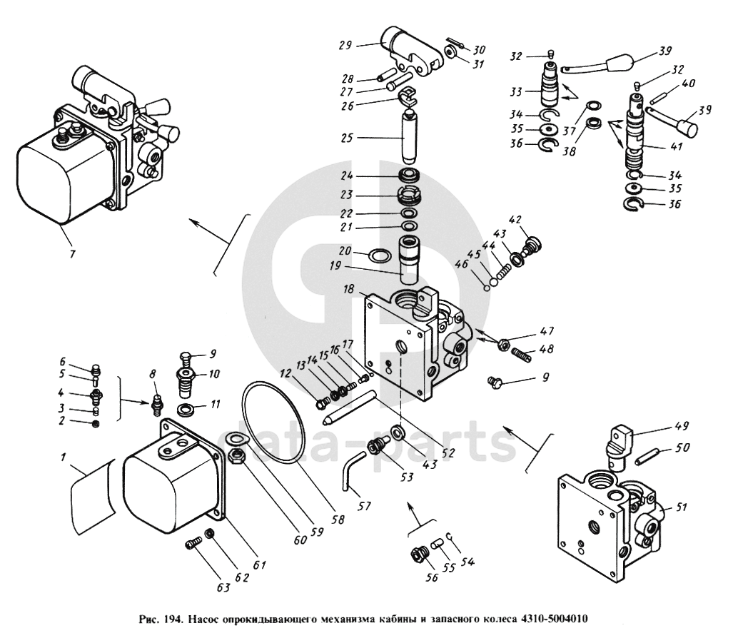 Насос опрокидывающего механизма кабины и запасного колеса