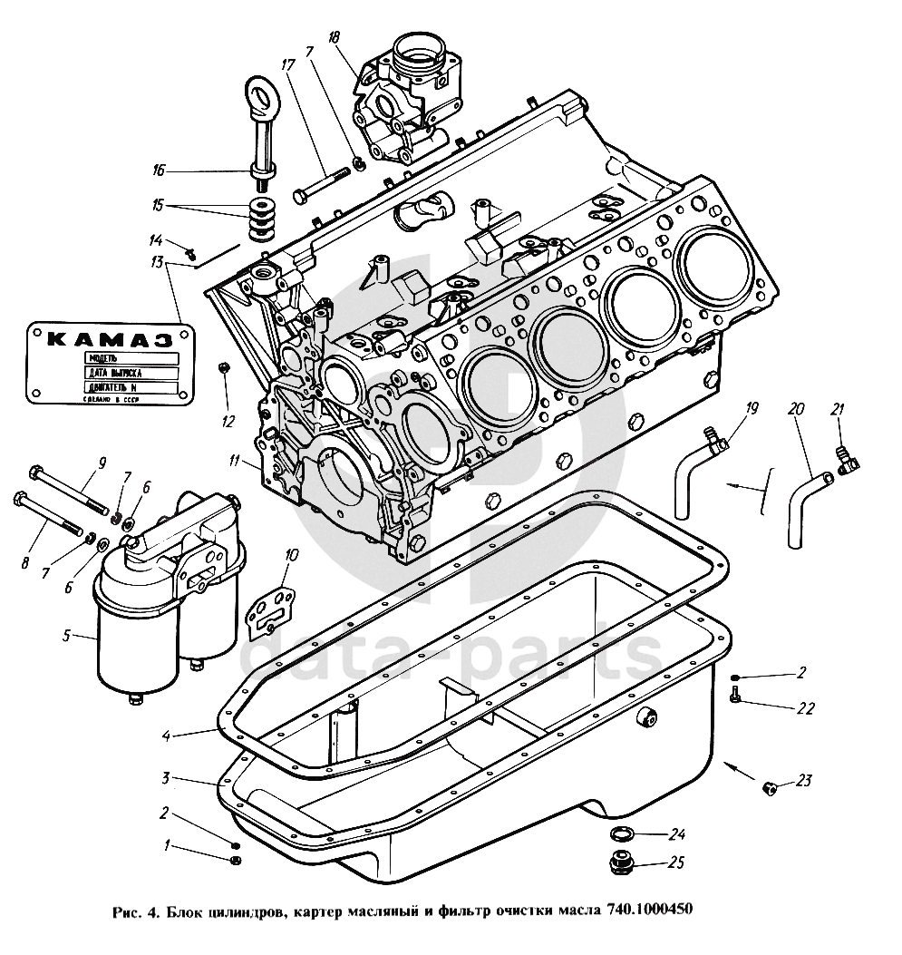 Блок цилиндров, картер масляный и фильтр очистки масла КамАЗ-4310