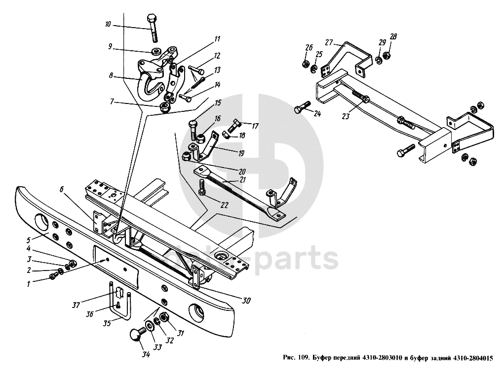 Буфер передний и буфер задний КамАЗ-4310