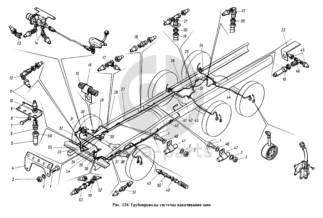 Трубопроводы системы накачивания шин КамАЗ-4310