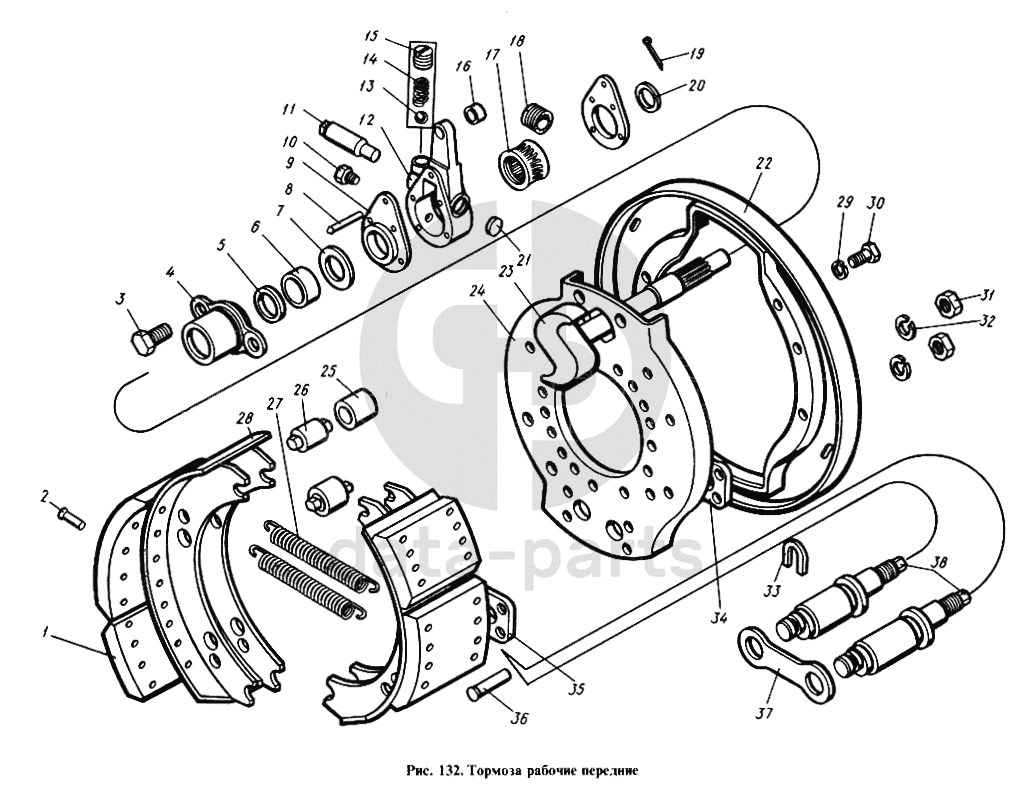 Тормоза рабочие передние КамАЗ-4310
