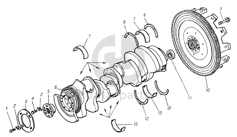 Установка вала коленчатого с маховиком КамАЗ-4310