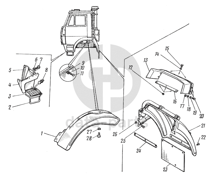 Крыло, брызговик и подножка КамАЗ-43101
