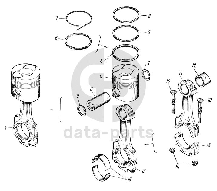 Поршень с шатуном и кольцами в сборе 740.1004010-10, 740.1004010-14