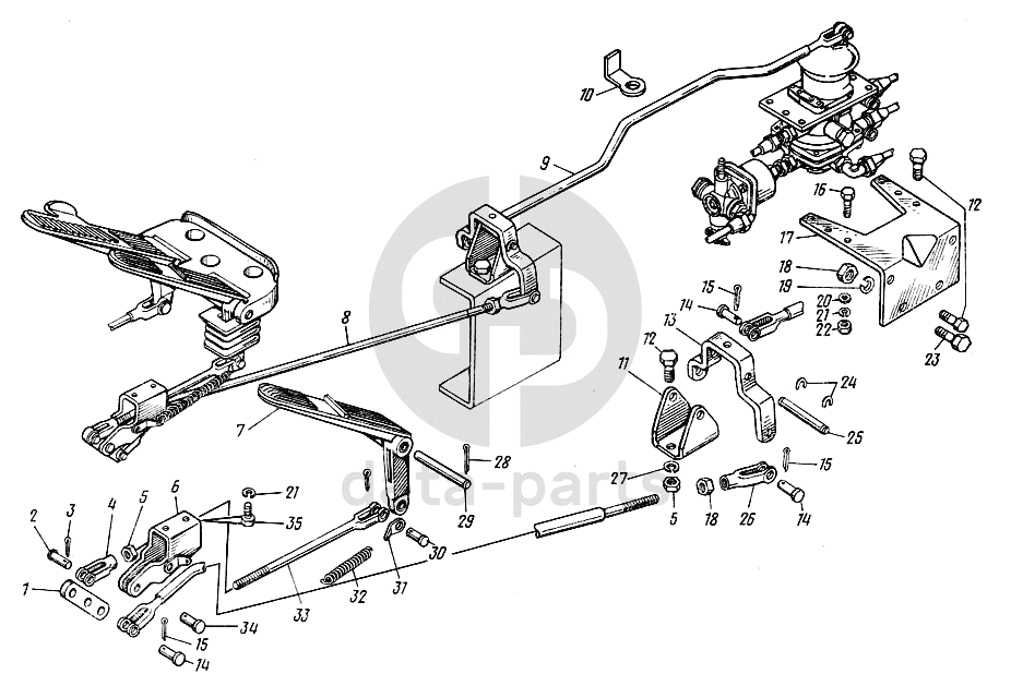 Педаль тормозная и привод КамАЗ-43101