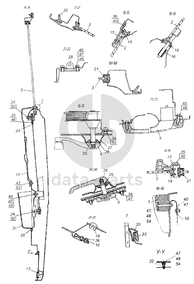 Держатель КАМАЗ уплотнителя стекла двери правый