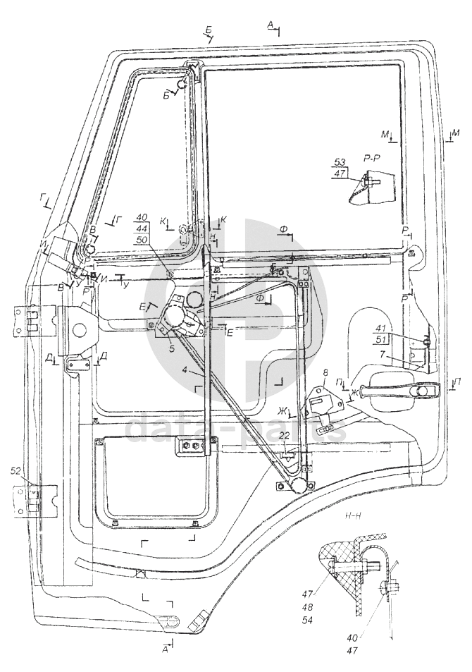 Установка стекол и арматуры двери левая КамАЗ-43114