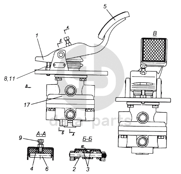 Кран тормозной двухсекционный с педалью КамАЗ-43114