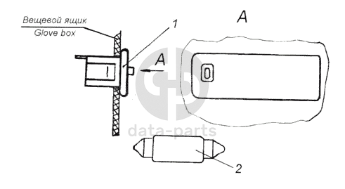 Установка плафона освещения вещевого ящика КамАЗ-43114