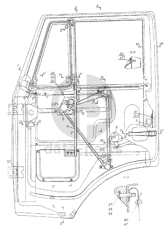 Установка стекол и арматуры двери левая КамАЗ-43118